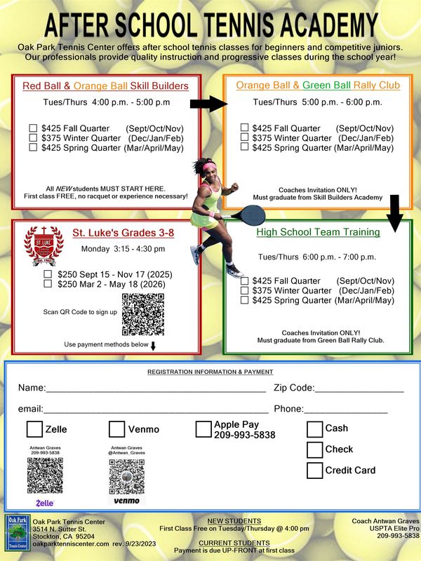 Thank you for choosing Oak Park Tennis Center for your child's afterschool activity!