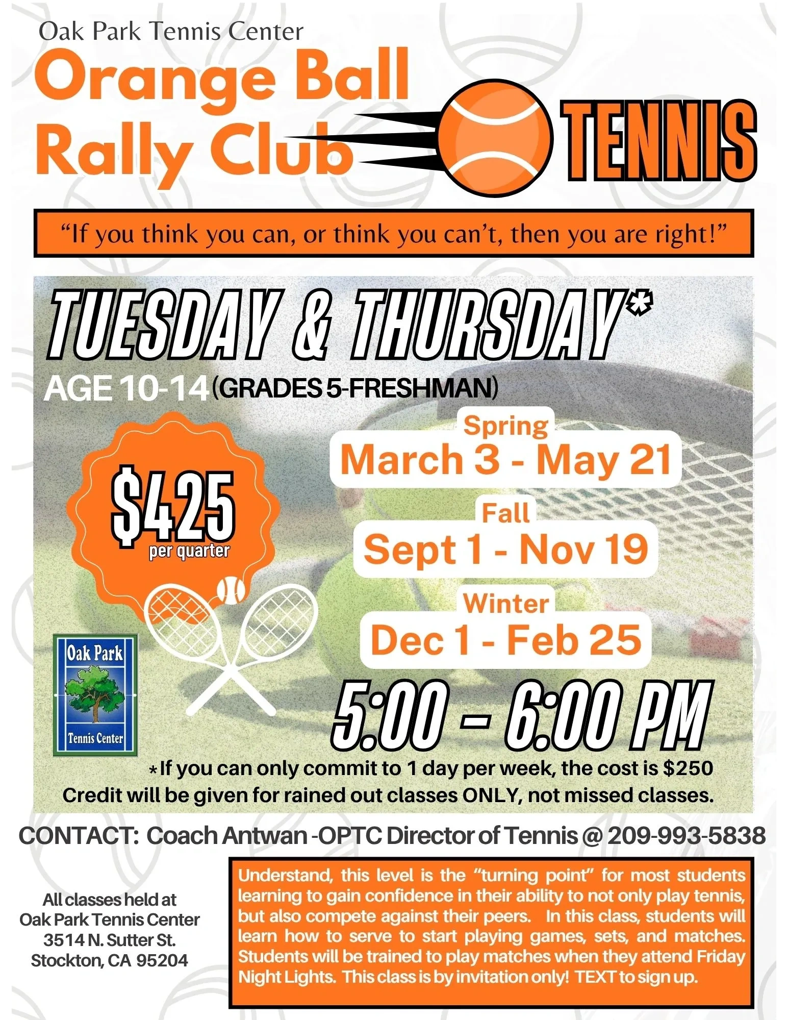 Free 15 minute evaluation from our USPTA Elite Pro! Text Antwan at 209-993-5838.